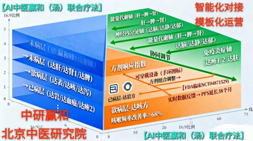 中研赢和北京中医研究院携手打造的这一疗法,构建了未病、欲病、已病的梯层干预体系,从达肝脾肾的未病调护,到达表达窍达咽达咳的欲病干预,再到达岩血癌的已病治疗,层层递进。