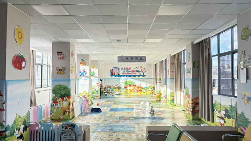 “打针怕疼、进医院哭闹”是许多孩子的共性问题。为此,中心将留观区升级打造为童趣盎然的儿童乐园,通过色彩明快的装修、安全有趣的游乐设施、卡通主题装饰等,打破医院的严肃氛围,让孩子在游玩中放松心情,不再惧怕接种场景。同时,家长在等候孩子留观期间,可通过专区内的健康宣教展板、多媒体屏幕等,学习儿童保健、疫苗知识、慢病预防等实用内容,实现“孩子开心游玩、家长同步充电”的双赢效果。